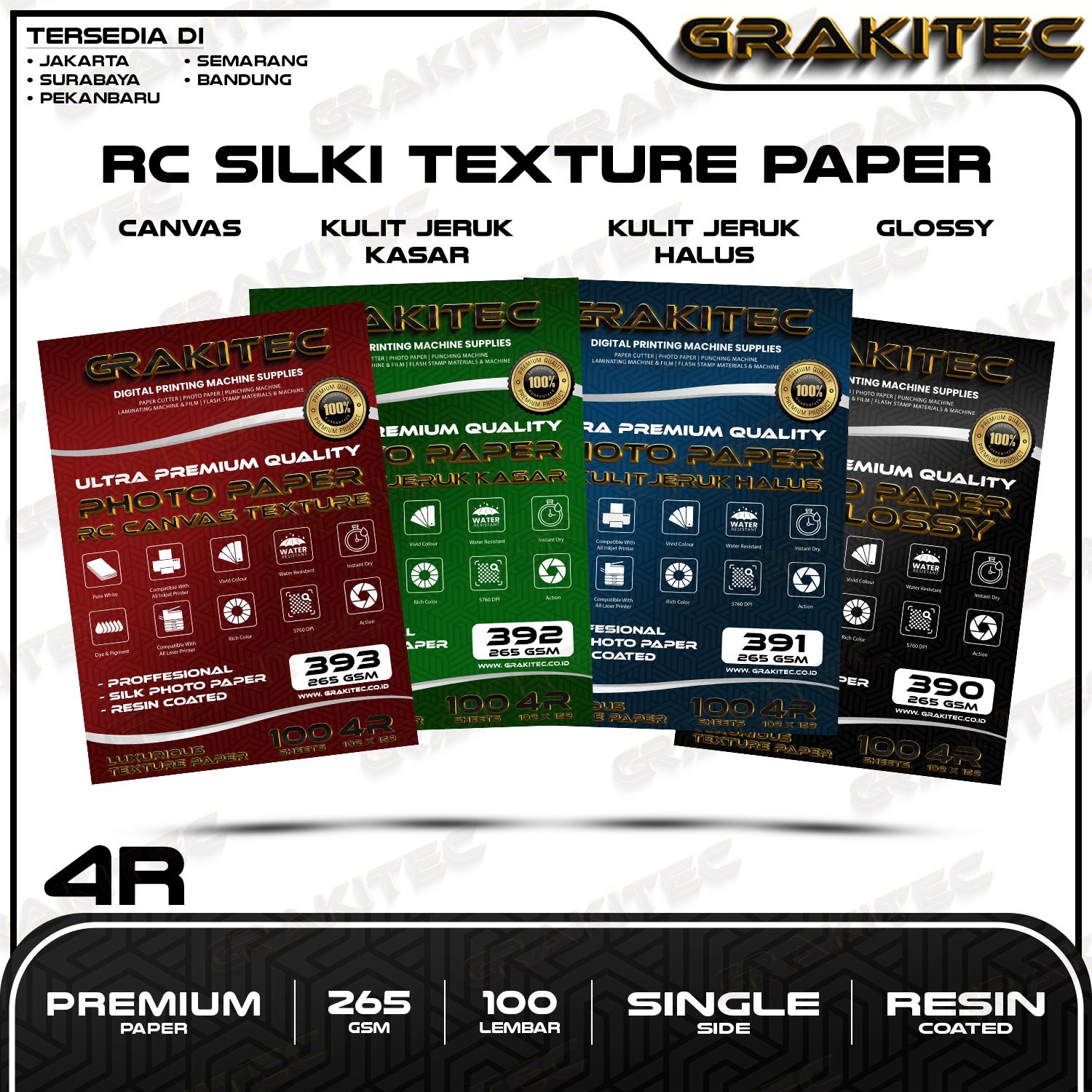 Kertas Foto SilkI 4R isi 100 Lembar Doff Kulit Jeruk Professional Silki Texture , RC Glossy Photo Paper, Doff Halus, Canvas, Doff Kasar / Luster Resin Coated Grakitec