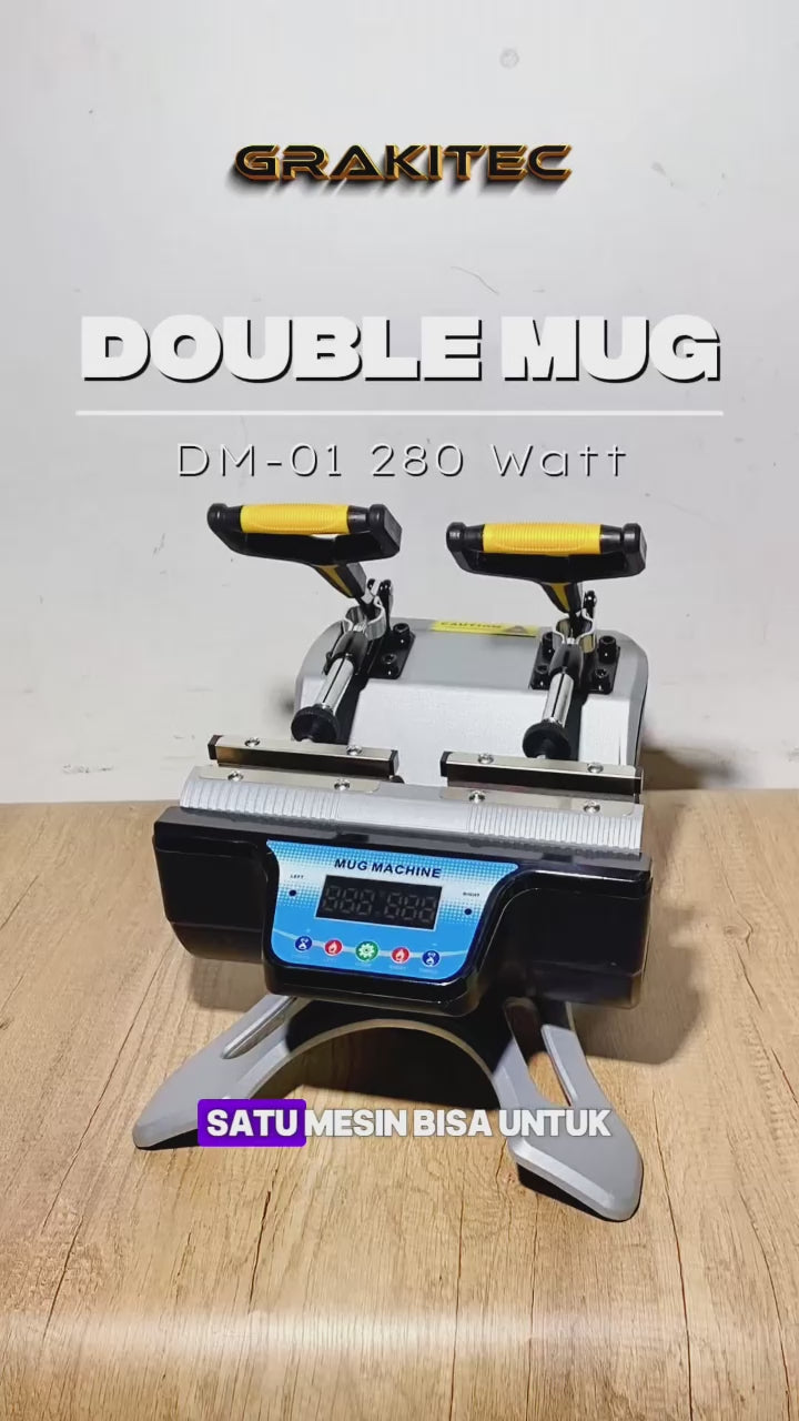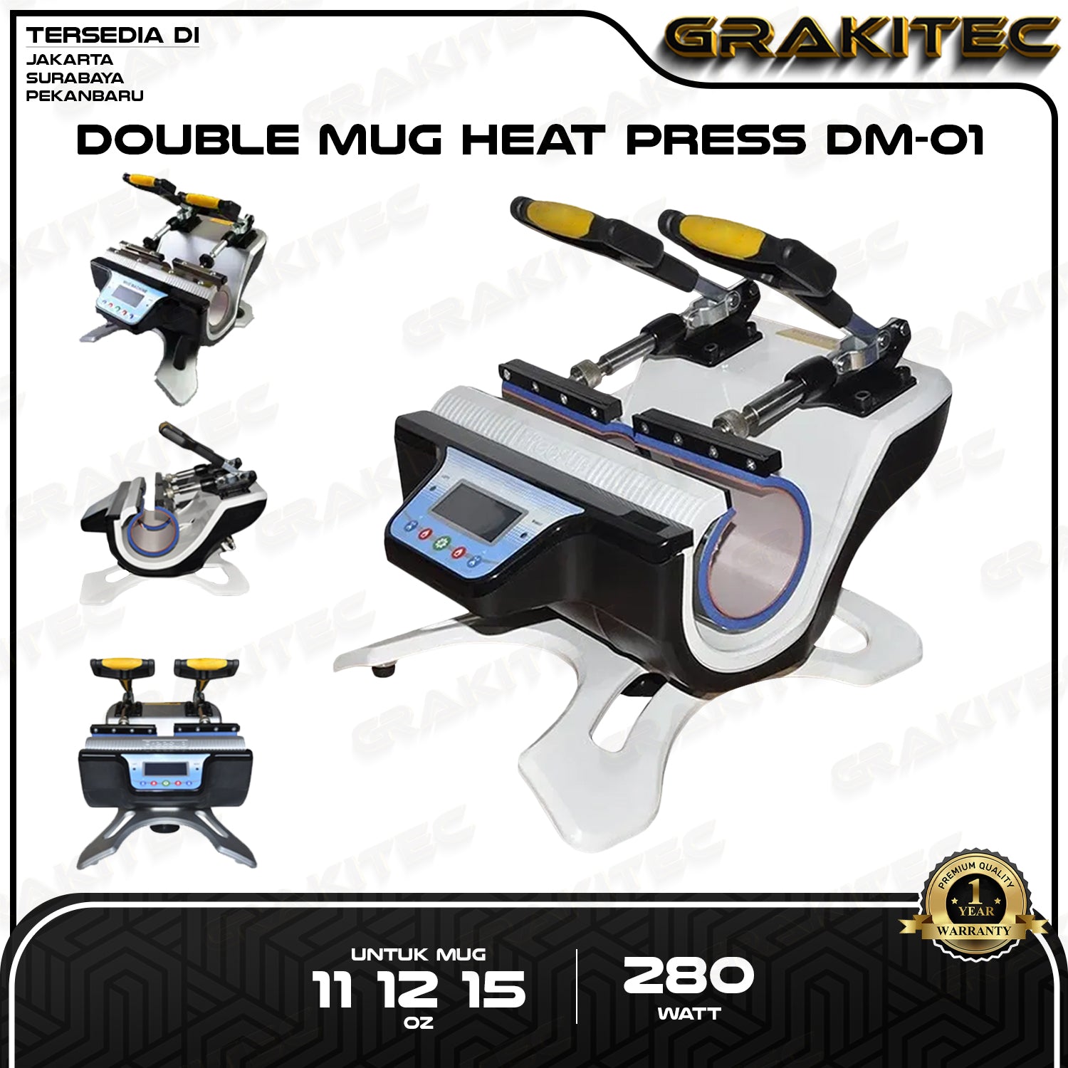 Mesin press mug DM-01 hadir dengan desain minimalis dan konsumsi watt yang rendah. Double Mug Heat Press bisa digunakan bersamaan atau hanya salah satunya. Apabila hanya menggunakan satu pemanas saja maka daya yang terpakai hanya 280 watt.
